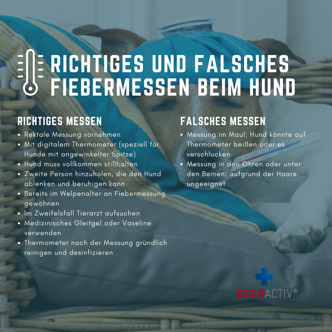 Wenn man hingegen Fieber in den Ohren misst, können die sich darin befindenden Haare das Messergebnis verfälschen. Das bedeutet: allein die rektale Methode ist bei Hunden geeignet, um erhöhte Temperatur oder Fieber festzustellen.